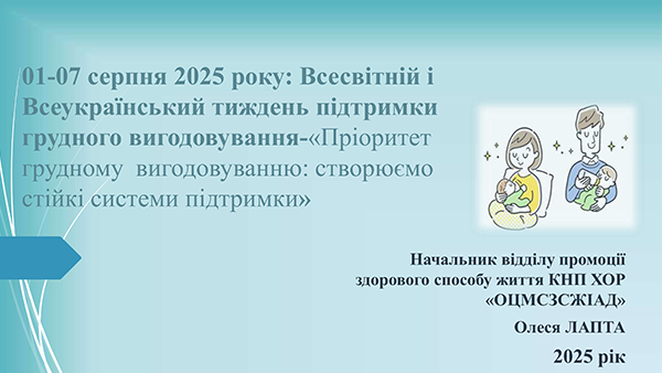 Щорічно в перший тиждень серпня у світі відзначається Всесвітній тиждень підтримки грудного вигодовування, задля підвищення обізнаності батьків та майбутніх батьків про переваги та користь грудного вигодовування. Акція проходить під егідою Всесвітнього альянсу із підтримки грудного вигодовування (WABA) у співпраці з ВООЗ, ЮНІСЕФ, урядовими та громадськими організаціями. У 2025 році цей Тиждень проходитиме під гаслом: «Пріоритет грудному вигодовуванню: створюємо стійкі системи підтримки».