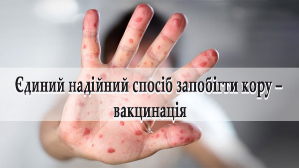 Якщо ви помітили у себе або членів вашої родини симптоми кору (підвищення температури до 38-39°C, нежить, почервоніння очей, сльозотеча та білуваті плями на внутрішній поверхні щік), негайно зверніться до найближчого медичного закладу.