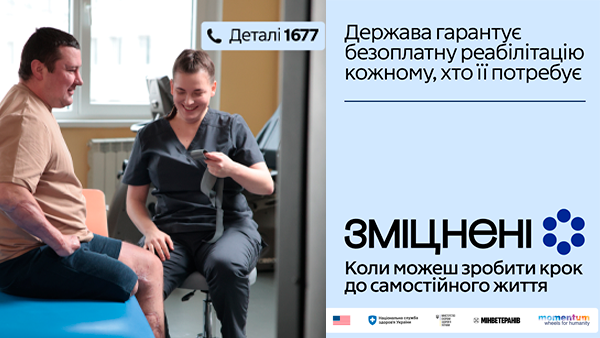 Інформаційна кампанія «Зміцнені» реалізується Національною службою здоров’я України у партнерстві з Міністерством охорони здоров’я України та Міністерством у справах ветеранів України за підтримки проєкту Rehab4U.