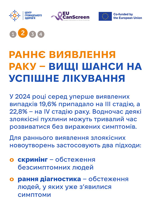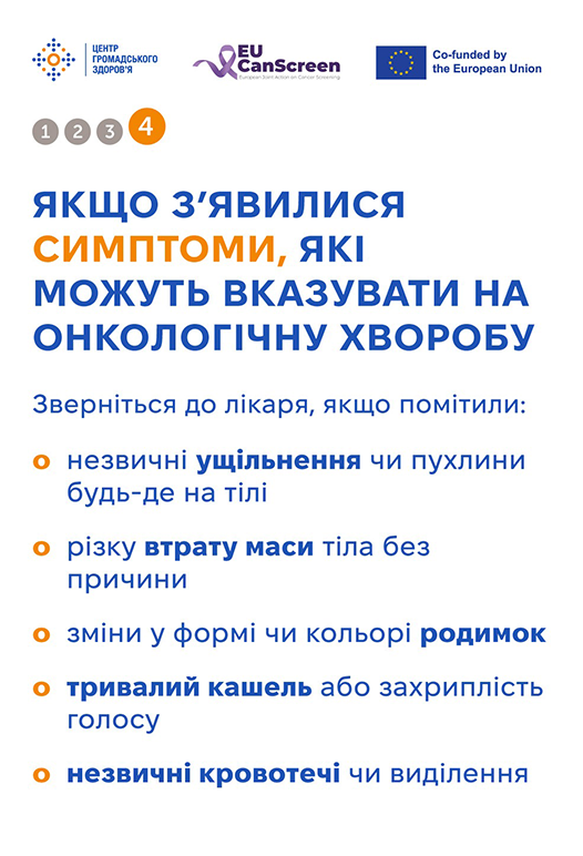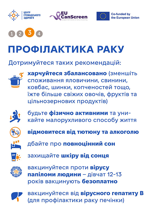 Сьогодні, у Всесвітній день боротьби проти раку, Центр громадського здоров’я нагадує: регулярні профілактичні обстеження, довіра медицини, заснованої на свідченнях, та уважне ставлення до свого здоров’я допомагають зменшити ризики розвитку онкологічних хвороб або підвищити шанси на успішне лікування у разі їх виявлення.