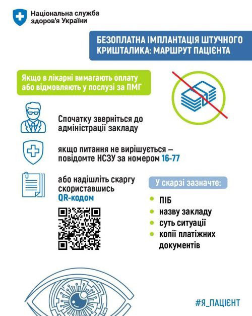 Часто пацієнтів хвилює питання вибору кришталика. І тут наголошуємо — НСЗУ не визначає виробника імплантів. Закупівлю медичних виробів організовує лікарня. Водночас тип і модель кришталика визначає лікар, враховуючи стан ока, діагноз і медичні протоколи.
